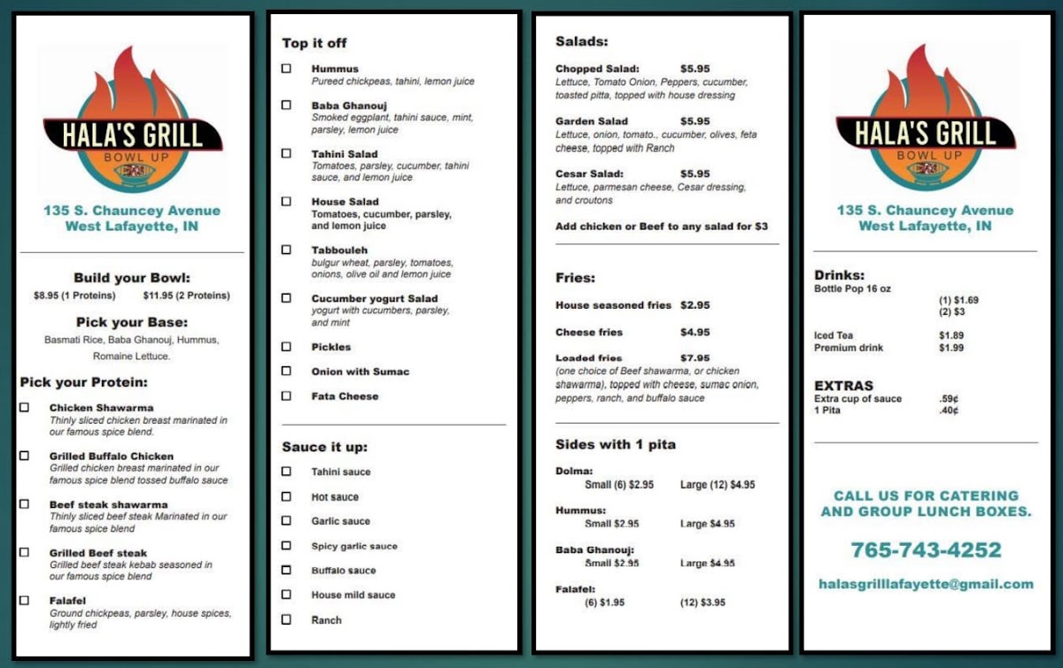 3 Falafel, Hummus, Baba Ghanouj, Tabbouleh Salad, 2 Pita, Tahinin Sauce.